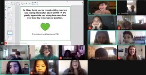 The class created a Q & A session with Dr. Meer where the students could ask two thoughtful questions about the pandemic.