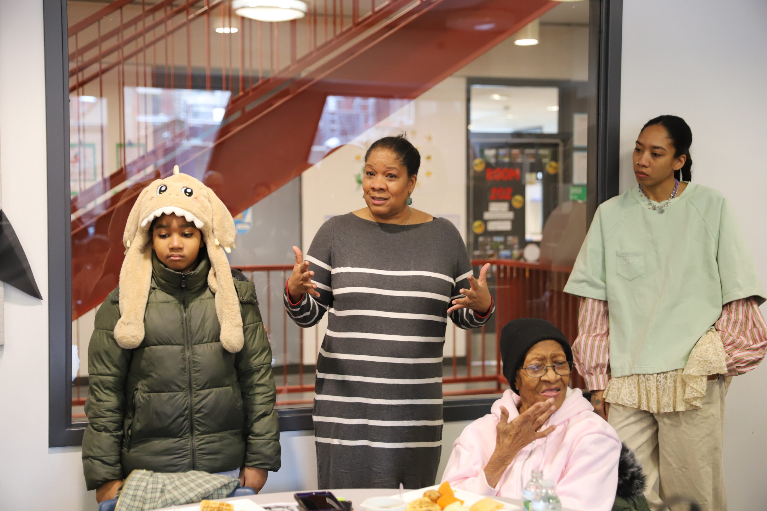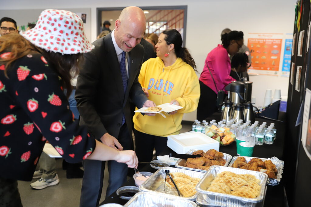 It was a special moment to have three generations of the hosting family at Breakfast My Way, and also special for Ridwan’s class to hear from their classmate about an important aspect of his life outside of school. This breakfast was full of laughter, community, and heart, as attendees snacked on fried chicken, waffles, and sweet potatoes in a warm and comforting meal.
