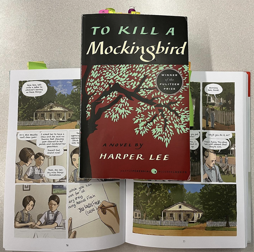 “I started to notice pretty quickly that my students really needed some visuals to help them better understand what’s happening in the story,” she said. “Once we got a graphic novel of the book for everyone, they started to reference it more, and there were a lot of, ‘aha’ kind of moments in the classroom like, ‘oh, I see who that is and what’s going on.’”